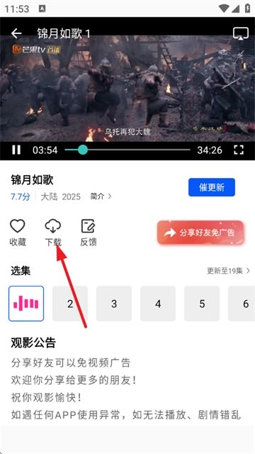 2、点击视频下方的下载按钮;