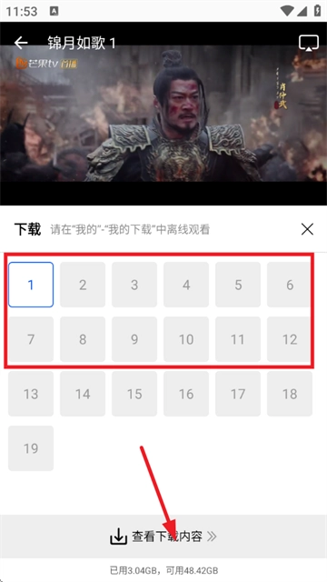 3、选择集数点击下载,随后点击查看下载内容;
