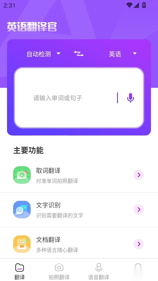 英语翻译官APP官方版是一款专业实用的英语翻译器工具,软件能够支持英语快捷的中文互译,可以满足多场景翻译和识别需求,软件带来翻译器辅助工具特别多样,让大家可以快速进行英语文档识别翻译,满足全场景的翻译器需求;喜欢该软件的朋友可以直接来下载。