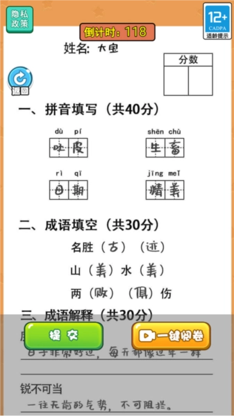 2、玩家需要批改各类不同的试卷,这些试卷难度各异。