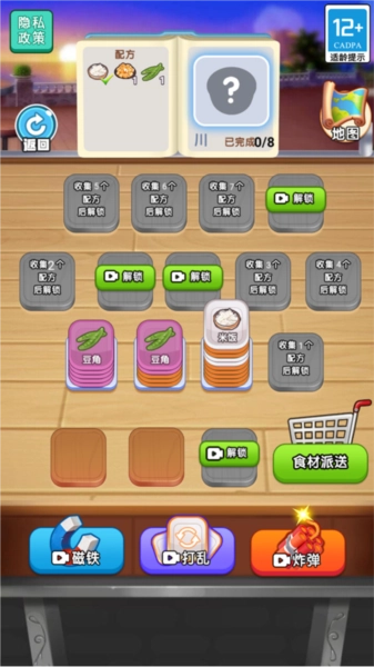 4、在“厨子也玩梗”里,需配合相应食物完成配方。