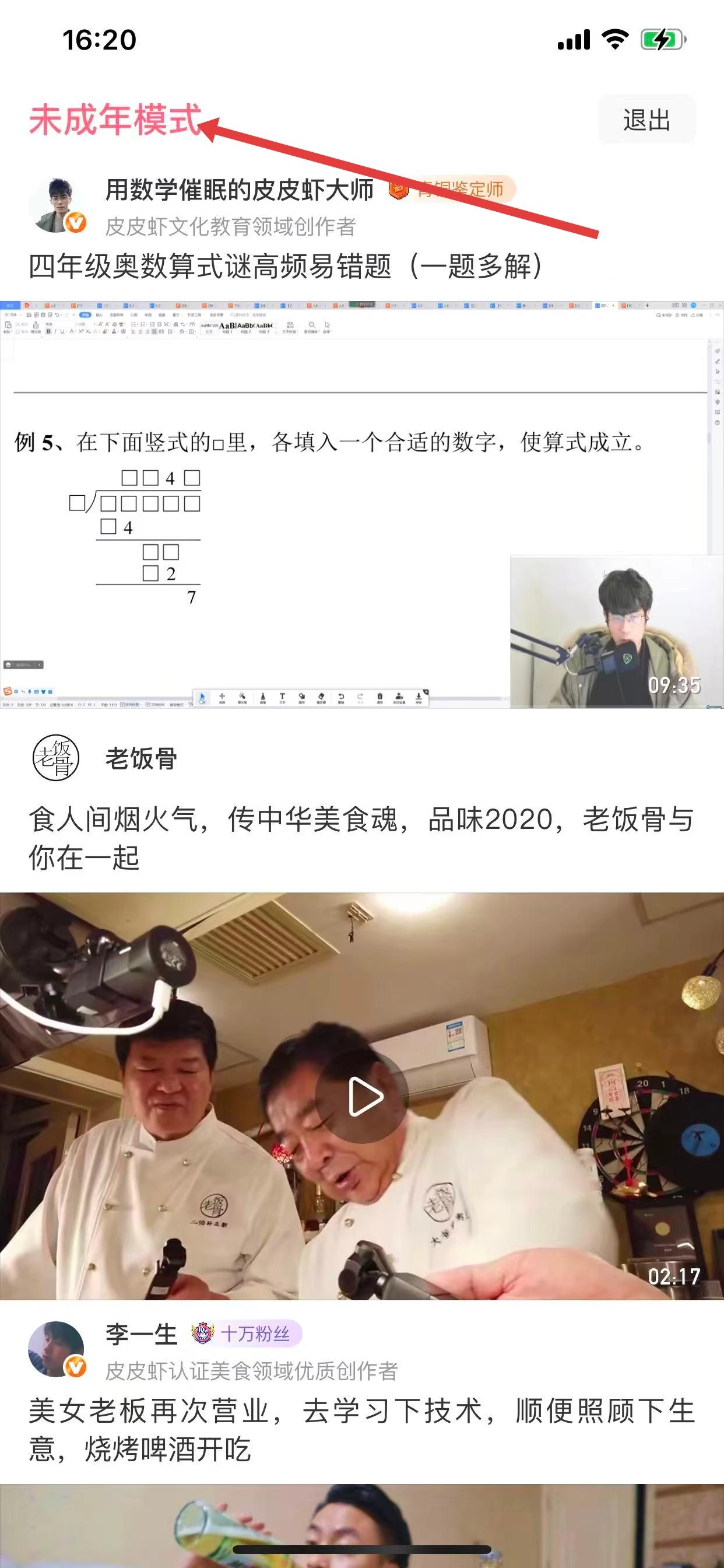3、成功进入未成年模式中,持续学习。