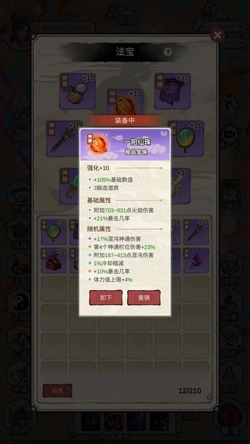 注意:有个加混沌神通伤害的紫珠子也可以考虑