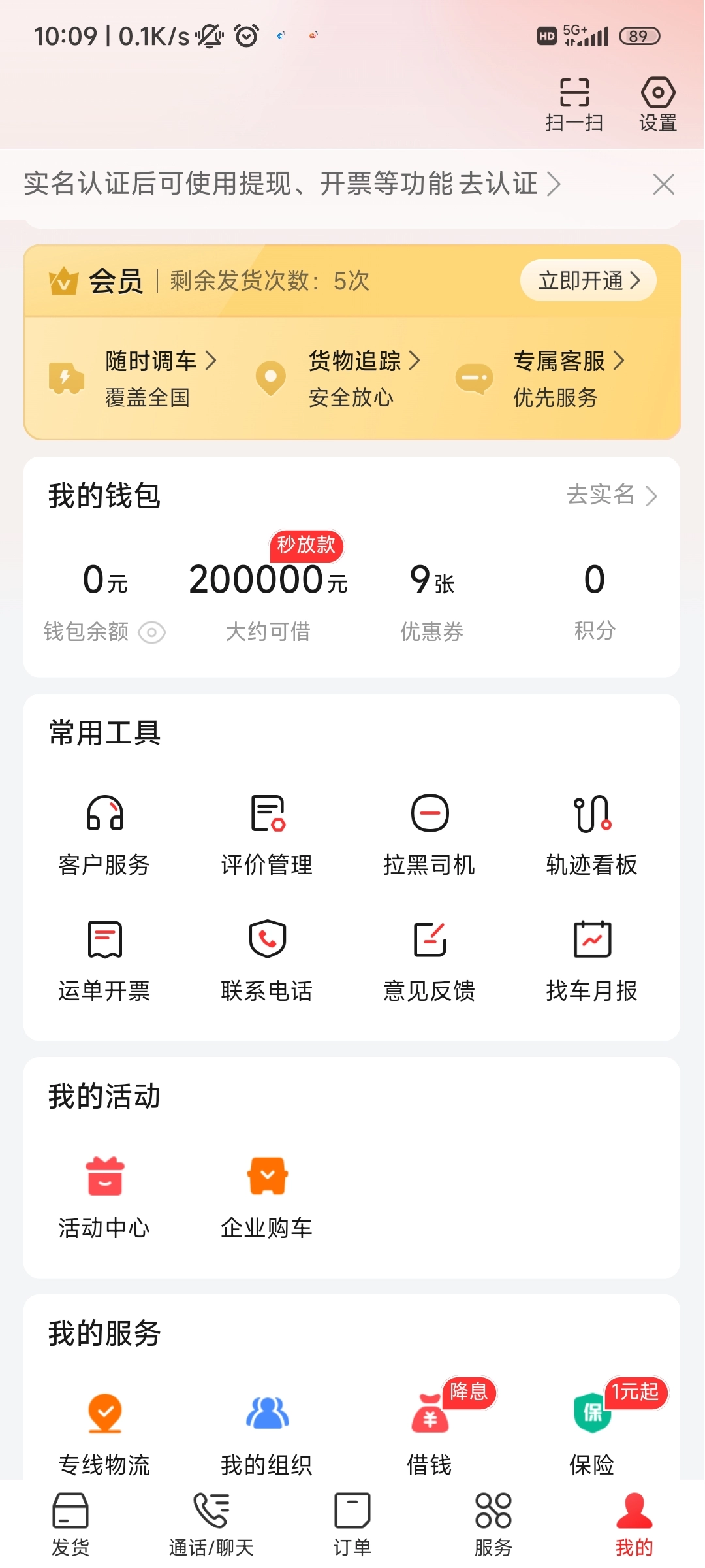 1. 开启运满满货主app,轻点下方的【我的】,接着点击右上角的【设置】