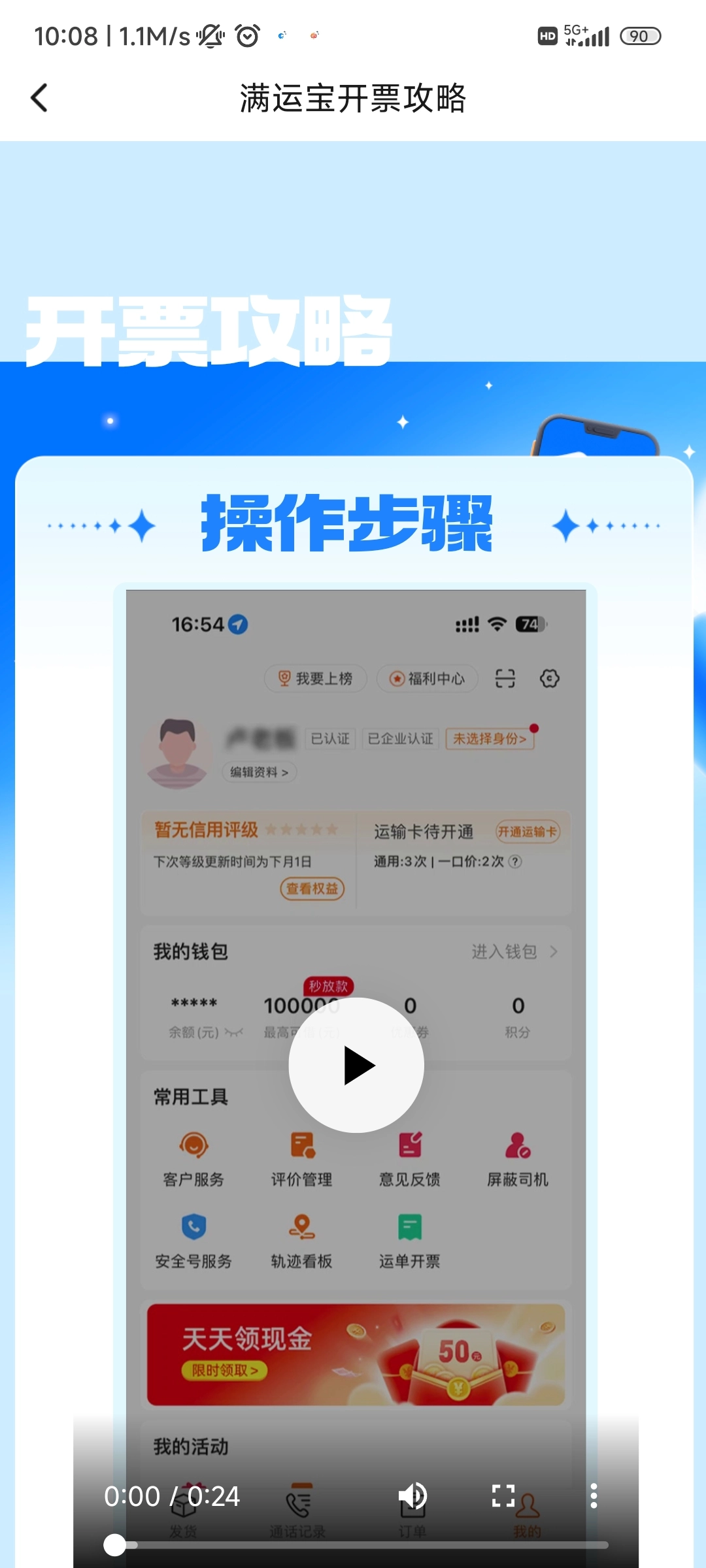 3、点击最下方的【满运宝专票开票攻略】