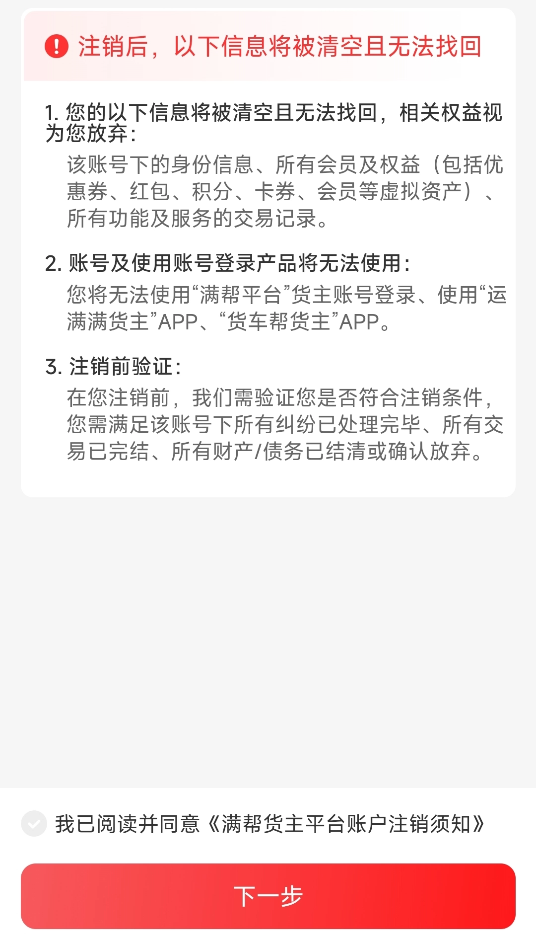 3、先勾选下方注销协议,再点击【下一步】