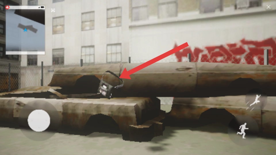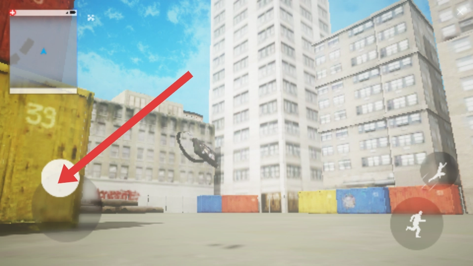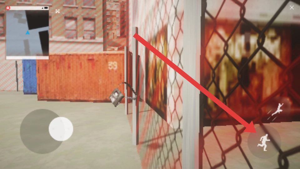 1、进入黑客出击的游戏页面,点击左侧的虚拟按钮位置来控制角色,查看左上角的地图,观察环境和物品。