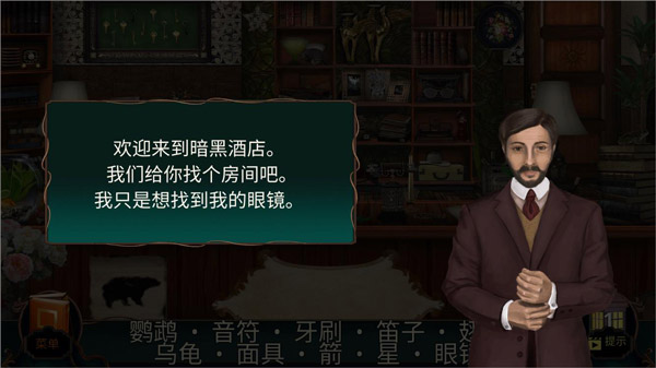 4、成功通过上一关卡后,玩家将进入第二关。此时,酒店管理员会向玩家给出提示,告知需要寻找哪些物品。