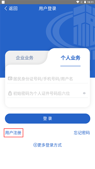 3、于个人业务页面寻找到用户注册选项,然后点击。