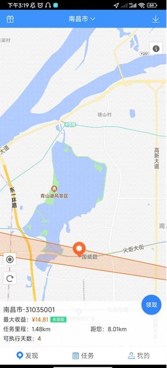 4、返回界面后,即可寻找任务,点击“领取”就能接单。