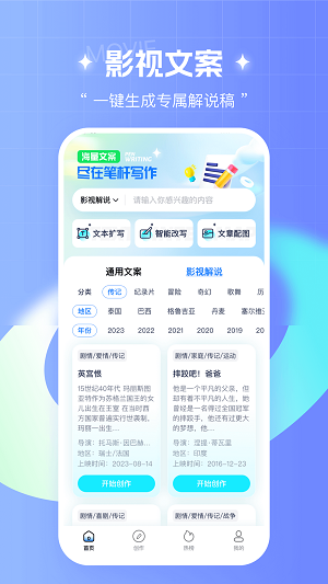 1. 平台为广大写作用户提供了海量文案,可自由挑选,涵盖广告文案、情感文案、日常文案等。
