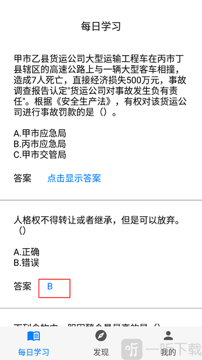的最新版本,在其首页便能直接开始答题。2、点击显示答案,答案就出现了。