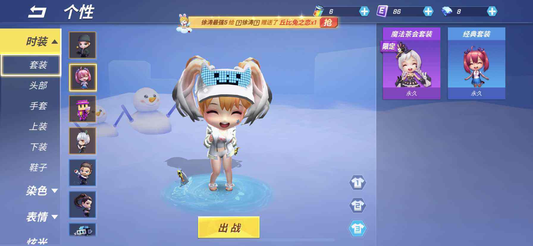在开始匹配前的准备界面,这是能够更换道具卡的第二个界面。