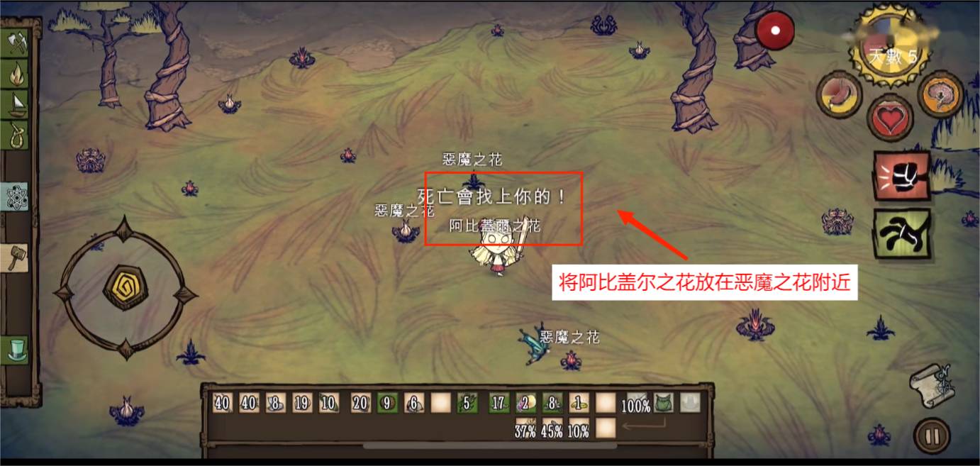 1、找到一片恶魔之花比较多的地方将阿比盖尔之花丢掉后放在附近。