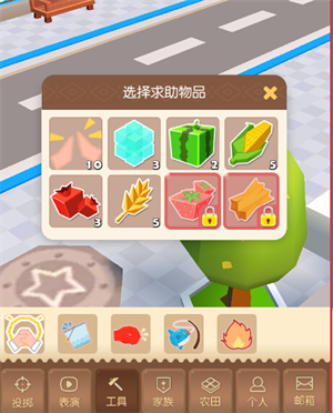 每隔一阵子,都能够在场景内向其他玩家寻求帮助,求助时偶尔可挑选鸡蛋、牛奶。