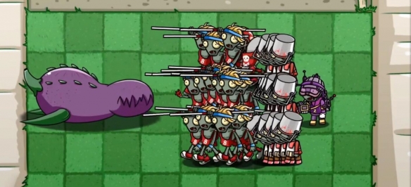 这关虽然出怪量翻了好几番,但因为豌豆被加强的缘故,只要你不傻傻地等着一个排的僵尸前来洗你都可以过关,甚至连阳光也不用骗......