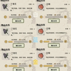 2、选择当货郎。需要注意的是,游戏中的NPC买卖存在数量上限,每种物品每天仅能售卖一组,每组为99个。每天售卖一组石头、木头、杂草或者竹子,99×5 = 495(这里售卖这些物品几乎零成本,但需要消耗体力) 。