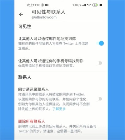 1.在登陆推特账号的时候,在弹出的应用权限框之中,允许同步通讯录;