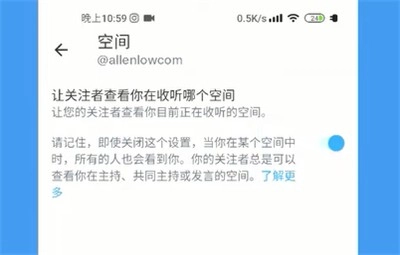 20. 禁用让关注者查看你正在收听哪个空间的功能,如此一来,你的关注者便无法看到你正在收听的空间。