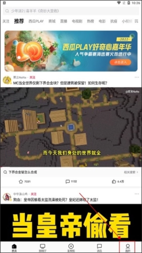 2、进到西瓜小视频主页以后,点一下右下方的“我的”,如下图所示。