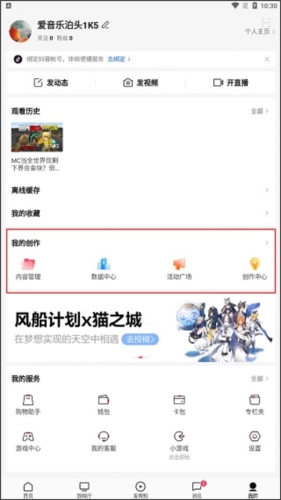 3、进到用户中心以后,挑选在其中的“我的创作”,如下图所示。