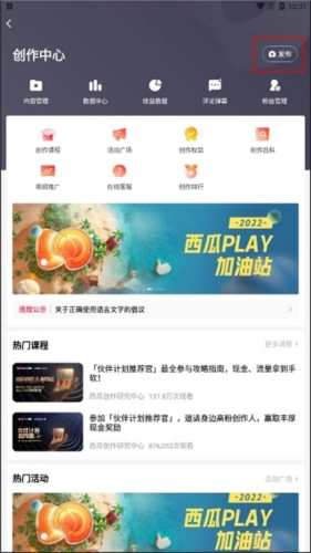 4、进到写作管理中心以后,点一下右上方的“发布”就可以公布视频,如下图所示。