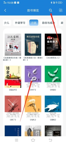 2、在这里我们就能去寻找想要看的电子书籍了,通过上方的“搜索”按钮还能去寻找喜欢看的书籍;