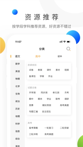 2、点击左上角,可选择所需学段和学科,进行检索分类。