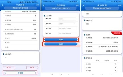4、出差地没有内部住宿点或住宿点满员时,应在住宿费限额标准内,选择安全、经济、便捷的宾馆住宿,具体看【住宿标准】。