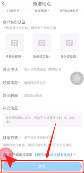 5、进入后先将我是该地商户右侧按钮开启,然后根据下方要求填写内容