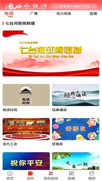 软件让用户可通过读新闻资讯、看直播、听广播等多样途径了解各内容。