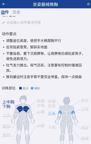 6、点击具体动作可以查看该动作锻炼的具体部位和动作要点。