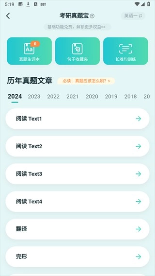 -涵盖历年考研英语试题,包括英语一/二,真题在线学