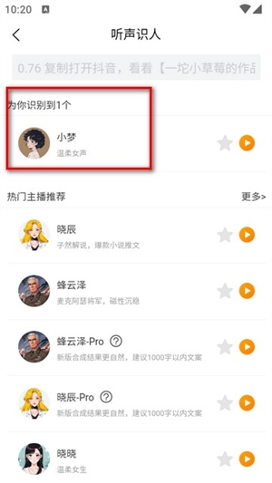 1、打开软件后点配音界面的听声识人功能。