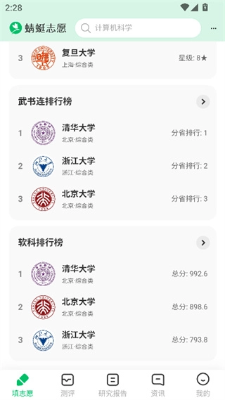 蜻蜓志愿涵盖了就业报告、院校数据报告、专业数据报告、招生计划数据报告、分数线分析报告、学科评估报告等在内的多维度报告,全方位助力家长及考生打破信息壁垒。