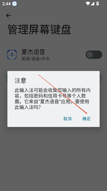 5、点击确定使用夏杰语音该输入法