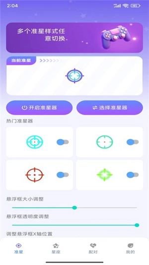 2、基础准星支持颜色、透明度、大小、角度等DIY设置