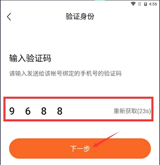 4、输入验证码进行身份验证,验证通过后点击“下一步”。