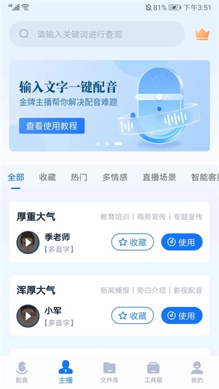 2、我们也能够依据自身的使用场景需求,挑选不同风格的语音类型来收藏并使用。