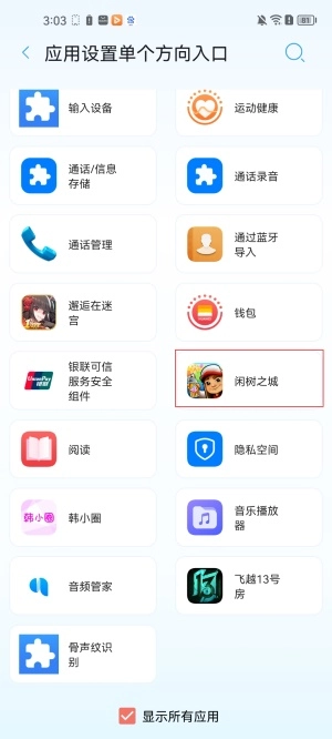 4、从主页面点击应用设置单个方向入口,再依次点击地【铁跑酷闲树之城版】。