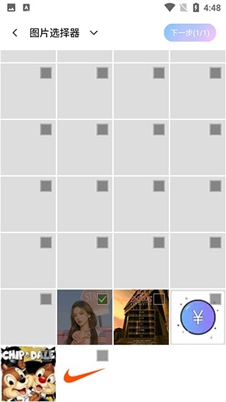 2、轻点漫画脸,进入图片选择界面,挑选出自己想要修改的图片,随后点击下一步。