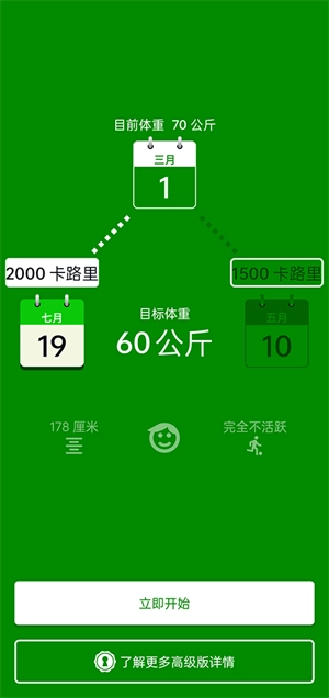 2、填写你的身高、体重、运动量等信息,立即开始。