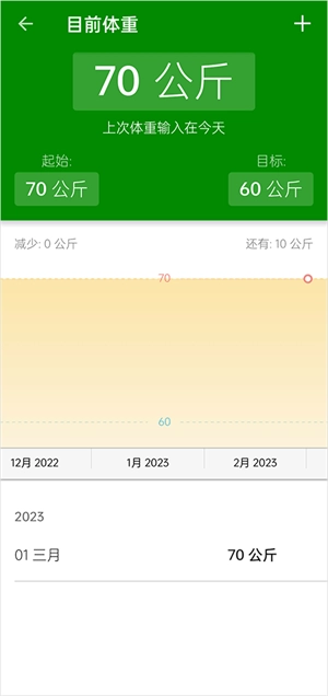 4、体重跟踪:监控体重的变化趋势,并以图表形式展示。
