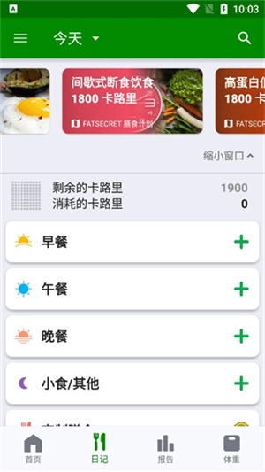 1. 第一步,打开FatSecret,选定你的目标,在此以减肥作为示例。