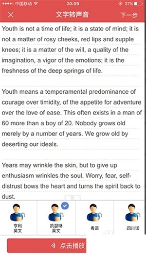 3、输入以下文字,随后能够对语速进行调整、更换播音员,若感到满意,就点击“下一步”。