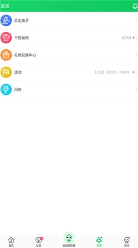 在发现板块中,有买定离手、个性装扮、活动、闪传等多种功能可供使用。