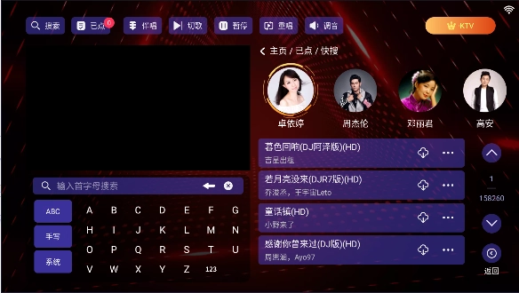 雷卡KTV堪称一款极为出色的卡拉OK点歌系统。其应用界面简洁清爽,功能布局清晰,让人一眼就能明白。它具备海量的歌曲库,用户既能够依据自身需求,在特色板块中随心挑选体验,也可以按照个人喜好自由点歌。