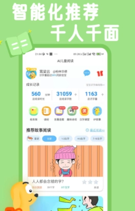 先进行测字,随后展开学习。依据宝宝认字识字的数量,精准推送契合孩子阅读的原创内容,助力孩子在阅读过程中轻松实现认字识字。平台提供数千篇原创绘本故事,成语故事、神话故事以及儿歌不仅生动有趣,还配备真人配音,使孩子在识字的同时,能够培养阅读兴趣。有需求的朋友不妨一试。