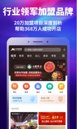 餐饮、教育、服装、家居、珠宝、美容、建材、等30大传统热门加盟行业,奶茶、小吃、早教、机器人教育、新零售、新物种等时下热门开店项目,满足您个性化的投资需求。