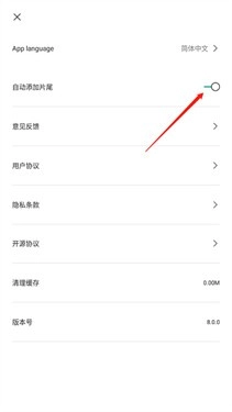 2. 进入设置界面,接着点击“自动添加片尾”右侧的黑色按钮。